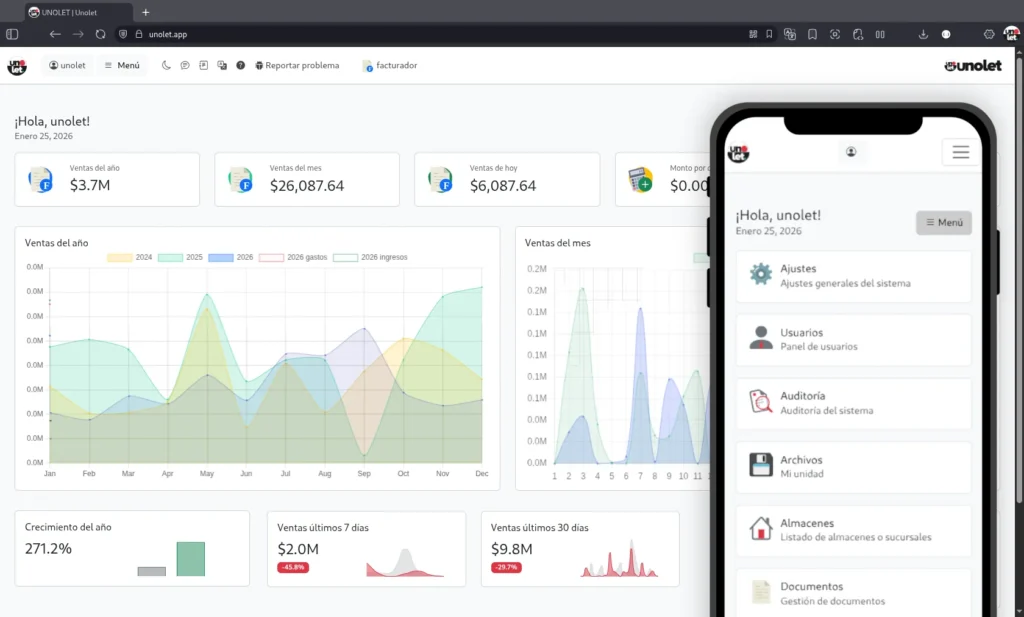 Con más de 5 años de experiencia, Unolet ERP combina simplicidad operativa con arquitectura empresarial segura y escalable.