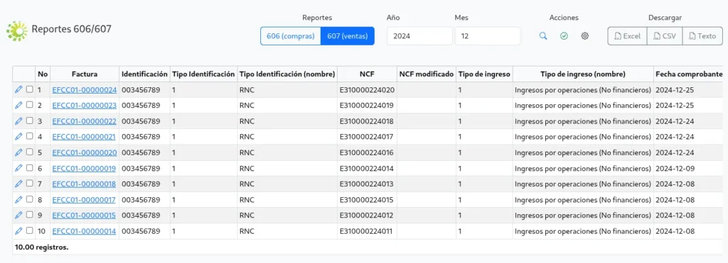 Reportes 606 y 607, registro de NCF, impuestos y facturación electrónica.