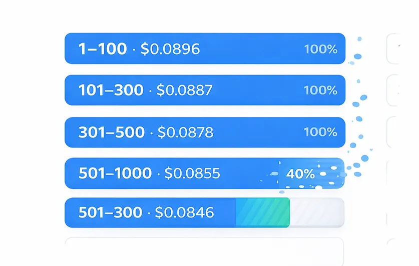 Costo escalonado según volumen mensual: