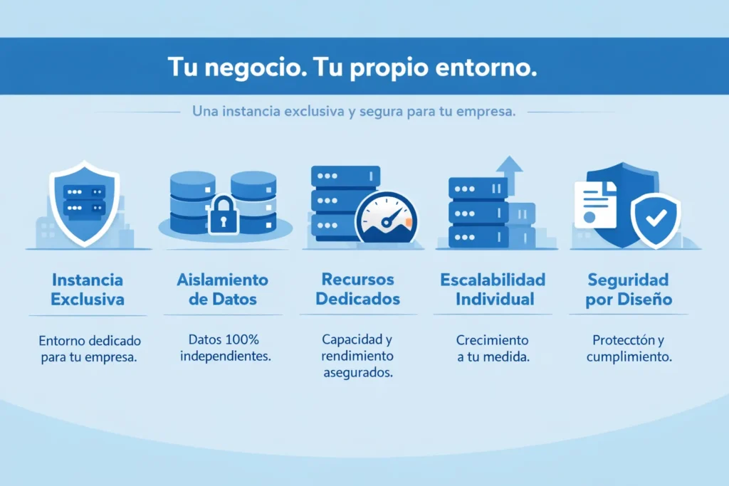 Es un entorno independiente, aislado y escalable diseñado para empresas que necesitan control, seguridad y crecimiento sostenible.